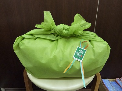 で、問題はラッピングです。この枕は袋に入って納品されるため、箱がないのです。箱がないのにコロンとした形です。包装紙でくるむのは無理なので、不織布を使ってみることにしました。