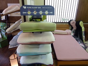 『まくら』の寝試しをされた方は「枕でこんなに寝心地がちがうの??」「あんべいい(按配がいい)」・・と、好評でした。