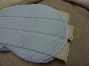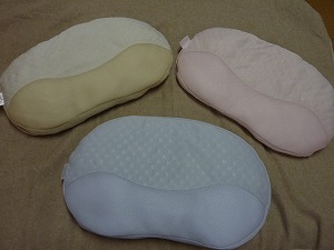 初めから高さが3段階にわかれており(低め<ピンク>・普通<イエロー>・高め<ブルー>)また、中身が入っている部分が上と下にわかれ、さらに3等分されているので、首元の左右、頭をのせる部分の左右と細かい調整が可能となっています。
