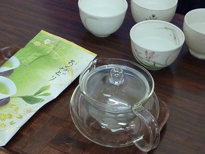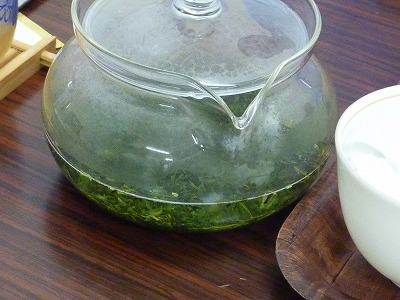 沸きたてのお湯を湯呑についで適温に冷めるまで世間話をします。たっぷりのお茶の葉を入れた急須にそのお湯を注いだら、ここでもじっくり蒸らしに時間をかけます。ここでもお話をして過ごします。じっくりと時間をかけてお客様をおもてなしする、といった印象です。