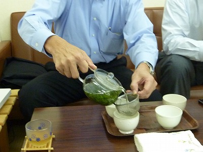 宇治ではお客様にお茶をお出しするのは男性の仕事だそうで、男の子は小さな頃からお茶の入れ方を教わるそうです。なので女性はお茶の出し方がわからないのだそうです。せっかくなので専務さんに入れて頂きました。