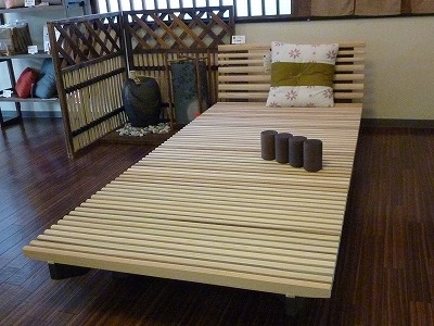 こちらも☝ニューフェイス!! おしゃれなデザインです。 大分県日田の杉の木をふんだんに使用したベッドです。通気性もよく、すのこ状のベッドが好きなかたにもおススメです。