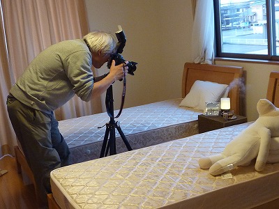 とりあえずベッドを置いてあった寝室ですが、そこに、ゆったりと眠る為に必要な寝具・枕、さらにリラックスできる環境作りに欠かせない、光・香り・音も合わせて提案。睡眠屋ならではの空間を演出させて頂きました(^^)v