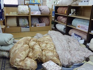 ↑生地や中身を確認し、さわり心地や暖かさを体感。この日はご家族分として4枚ご購入頂きましたm(__)m
