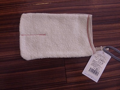 石けんを付けずに洗えるタオルなのですが、そのため肌の上を滑りにくく、タオルを動かすと丸まって洗いづらかったのです。でも、ミトンは中に手を入れて、袋の幅だけ手を広げれば…もうスイスイです(^^♪