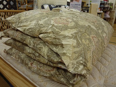 古布団も中の羽毛のクリーニング+足し羽毛、側生地の交換でこんな感じに↓↓↓