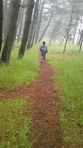 新緑に囲まれた一人ずつしか通れない一本道。。。