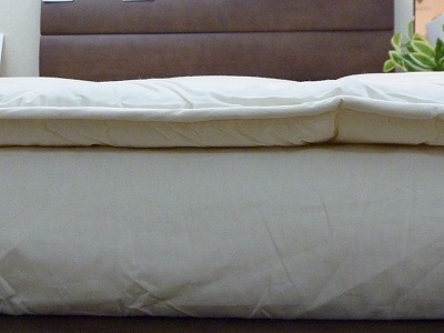 羊毛とポリエステルが半分ずつ入った、「パッド」と呼ぶよりは「薄めの敷きふとん」といったところ。