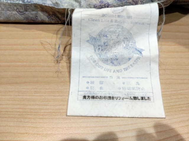 お預かりした3枚の羽毛布団には、ダック85%の羽毛が充填されていました。