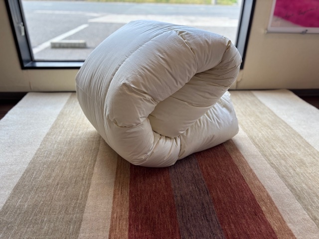 特に補充羽毛について、産地やダウン率など、お客様にとって譲れない点と調整が可能な点を伺いながら、ご予算も照らし合わせて複数のご提案をいたしました。じっくりと時間をかけてご検討をいただき、ご納得の羽毛布団リフォームとなりましたこと、大変うれしく思っております。