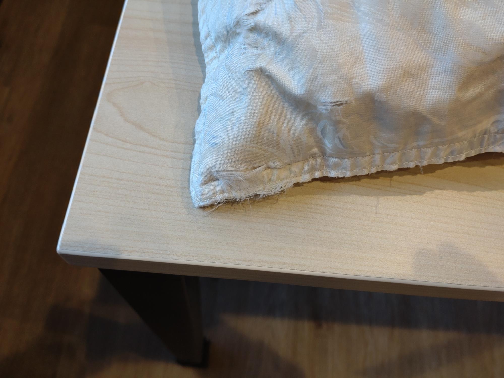 愛着のある羽毛布団の生地が破れ、羽毛が吹き出してしまうトラブルにお困りとのことでご依頼をいただきました。20年以上使用した羽毛布団に「新品を購入するほどの金額をかける価値があるのか」などご不安な点の相談を重ねながら、ご納得いただいた上でリフォームにとりかかりました。